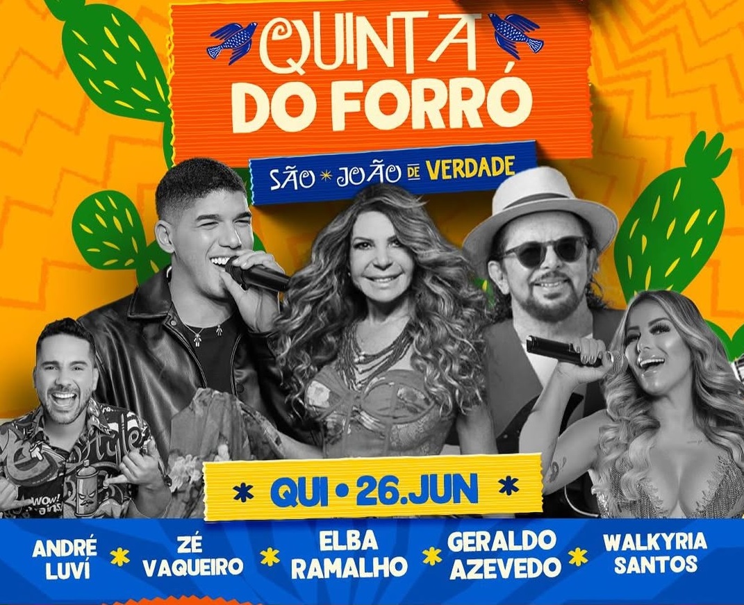 Além deles, a “Quinta do Forró” contará ainda com apresentações de Zé Vaqueiro, Walkyria Santos e André Luví.
