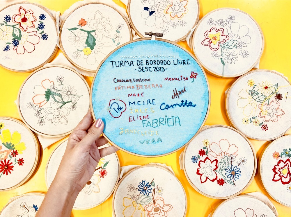 No mês de setembro Carol teve a oportunidade de mediar a oficina de Bordado Livre para iniciantes no Sesc Mossoró, para uma turma de 20 alunos, voltada à valorização social de pessoas de baixa renda, na qual grande parte foi constituída por mulheres. “Foram cinco tardes incríveis que depois de ensinar sobre os materiais e as principais metodologias, sentávamos para bordar e conversar por horas seguidas. Foi uma experiência bastante gratificante na qual pude passar um conhecimento tão importante para mim e minha vida” afirma Carol.