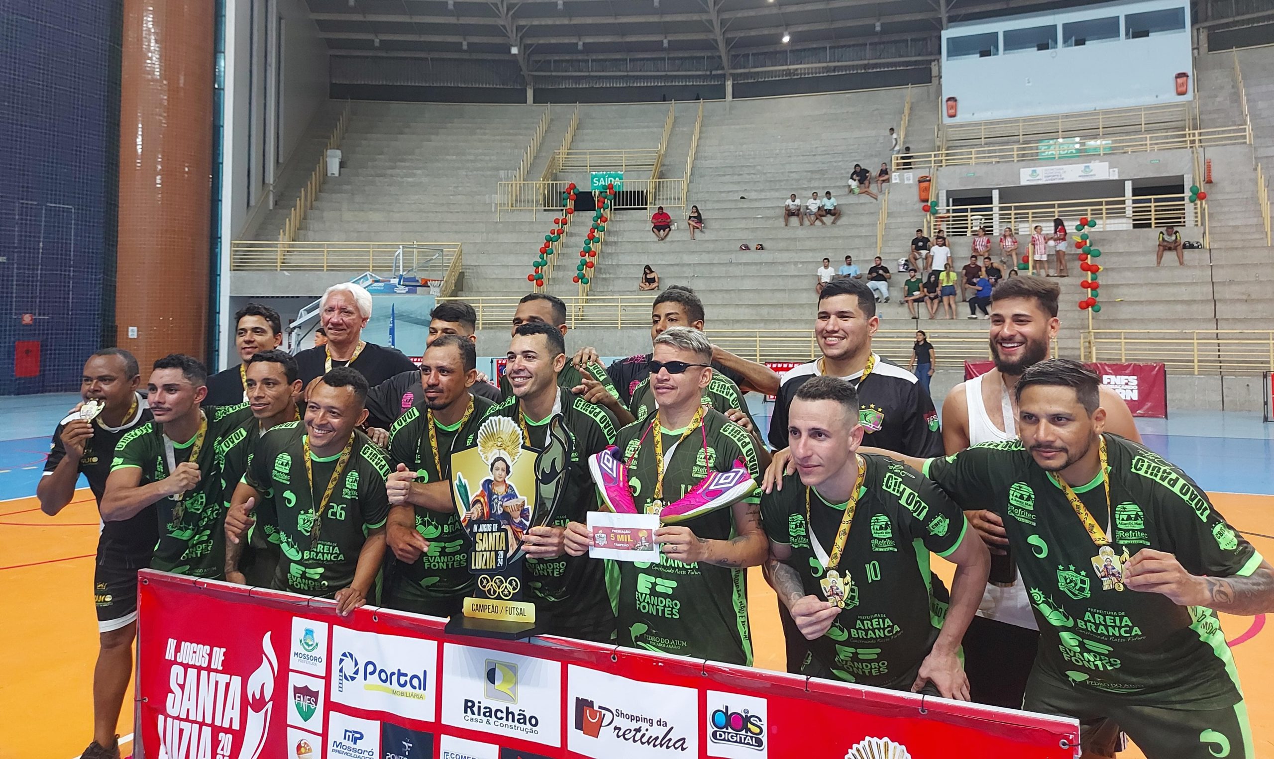 A Academia Corpo e Ritmo voltou ao lugar mais alto do pódio nos Jogos de Santa Luzia. A equipe venceu o Potiguar por 5 a 1, na noite desta quarta-feira (11), e conquistou o tetracampeonato da competição de futsal. Em sete participações, o time de Areia Branca chegou a seis finais e agora leva para casa o quarto troféu.