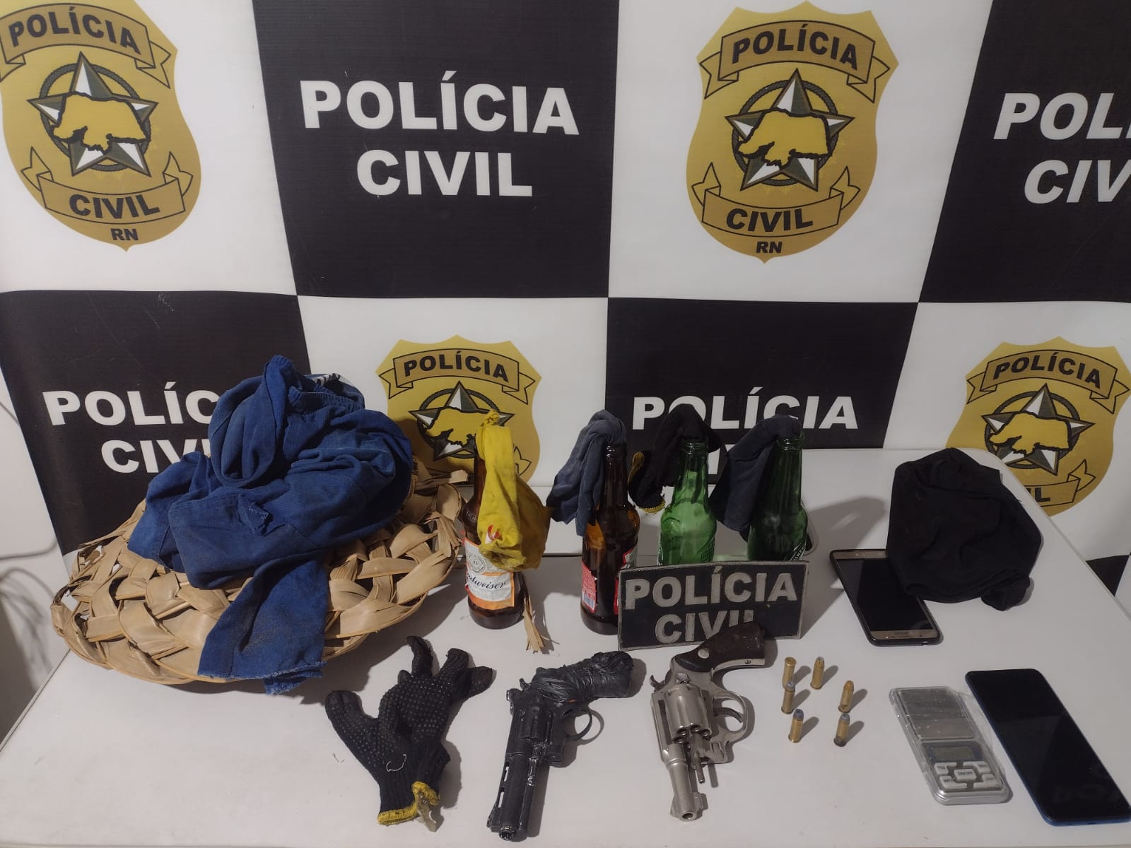 Foram apreendidas 15 armas de fogo, quatro simulacros de arma de fogo, 46 artefatos explosivos, 10 Galões de Gasolina, cinco motos, dois carros, dinheiro fracionado, drogas e munições.