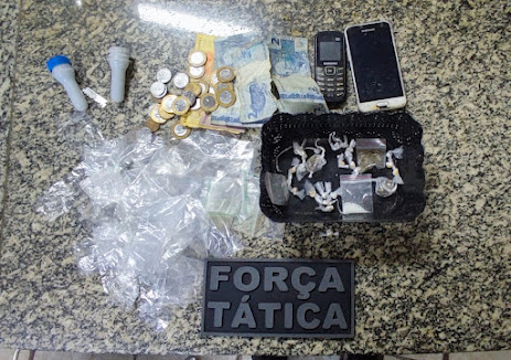 Conforme a PM, os policiais encontraram com a mulher cerca de 22 pedras de crack, três trouxinhas de maconhas, um papelote de cocaína, sacos plásticos e cerca de R$ 74 reais.