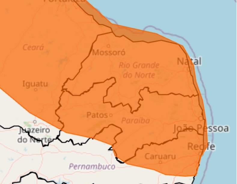 O Instituto Nacional de Meteorologia (INMET) emitiu um aviso de chuvas intensas para todo o estado do Rio Grande do Norte.