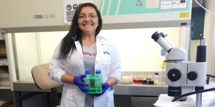 Flávia no o laboratório no ENEA. Foto: Arquivo pessoal.