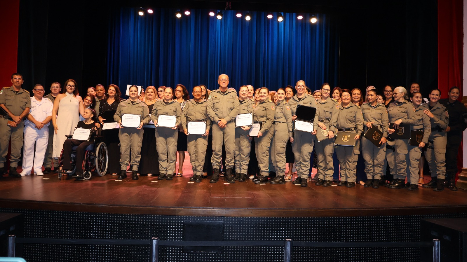 A Polícia Militar do Rio Grande do Norte (PMRN) realizou, na manhã desta quarta-feira (24), no Teatro Alberto Maranhão, em Natal, a solenidade alusiva aos 38 anos da presença feminina na corporação e aos 35 anos de formação da primeira turma de soldados femininos da PMRN, conhecida como Pioneiras Potiguares. O evento reuniu autoridades civis e militares, policiais da ativa, veteranas e convidados.