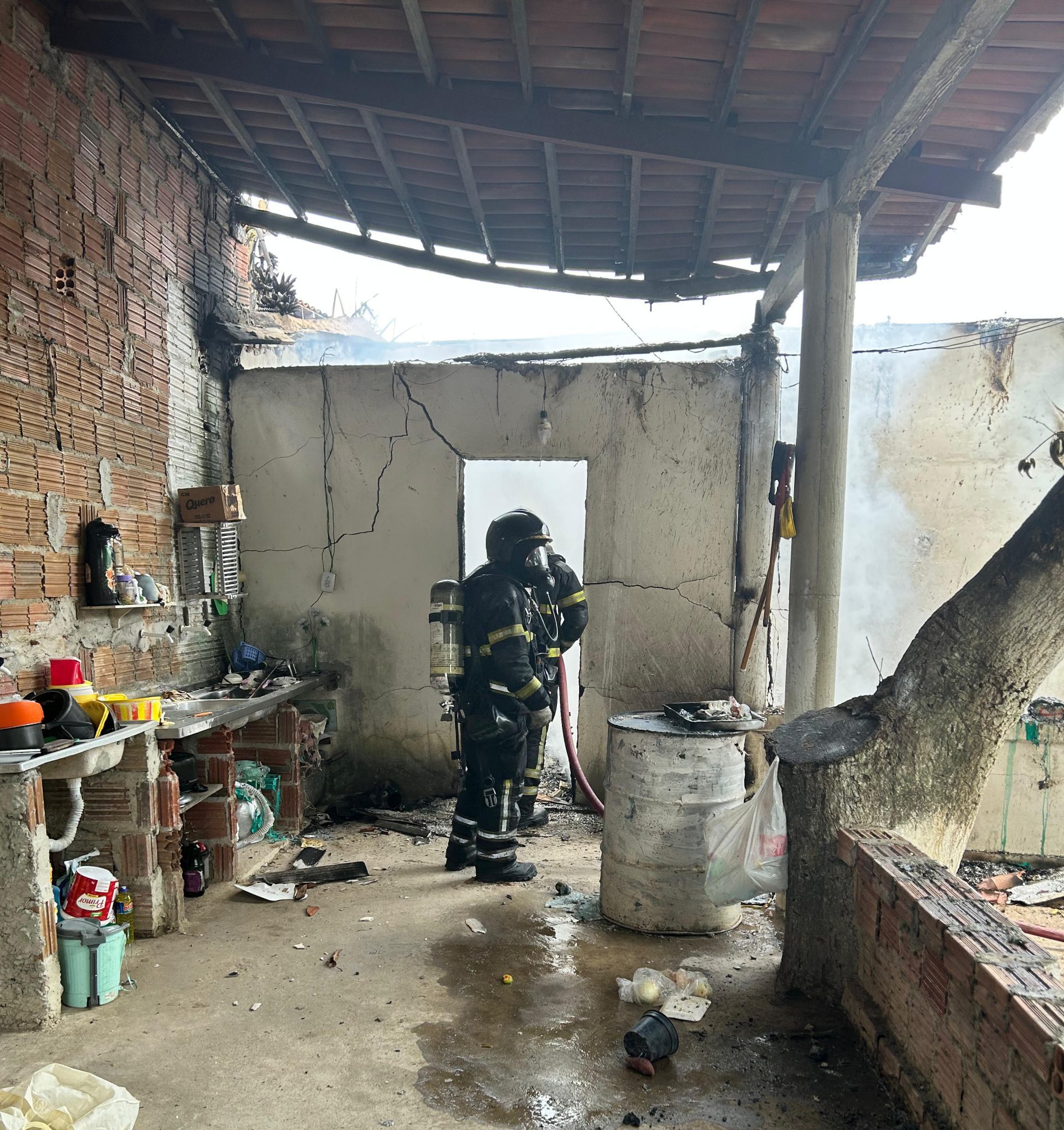 De acordo com a corporação, um vazamento em um botijão de gás pode ter sido a causa do incidente. Devido ao alastramento das chamas, as paredes e o telhado do imóvel ficaram comprometidos.