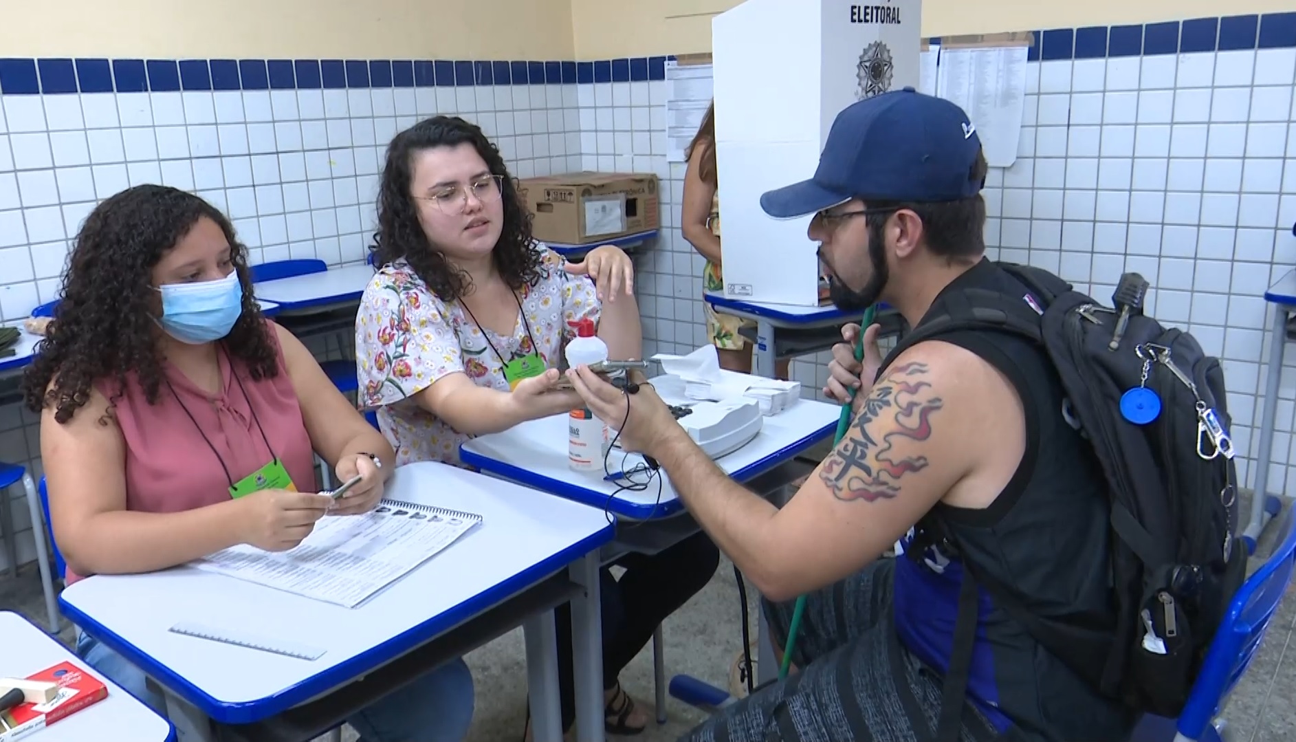 A Escola Municipal Manoel Assis, na seção 19, é o local de votação de Thiago Queiroz, pessoa com deficiência visual. Segundo ele, o processo foi bastante tranquilo e rápido.
