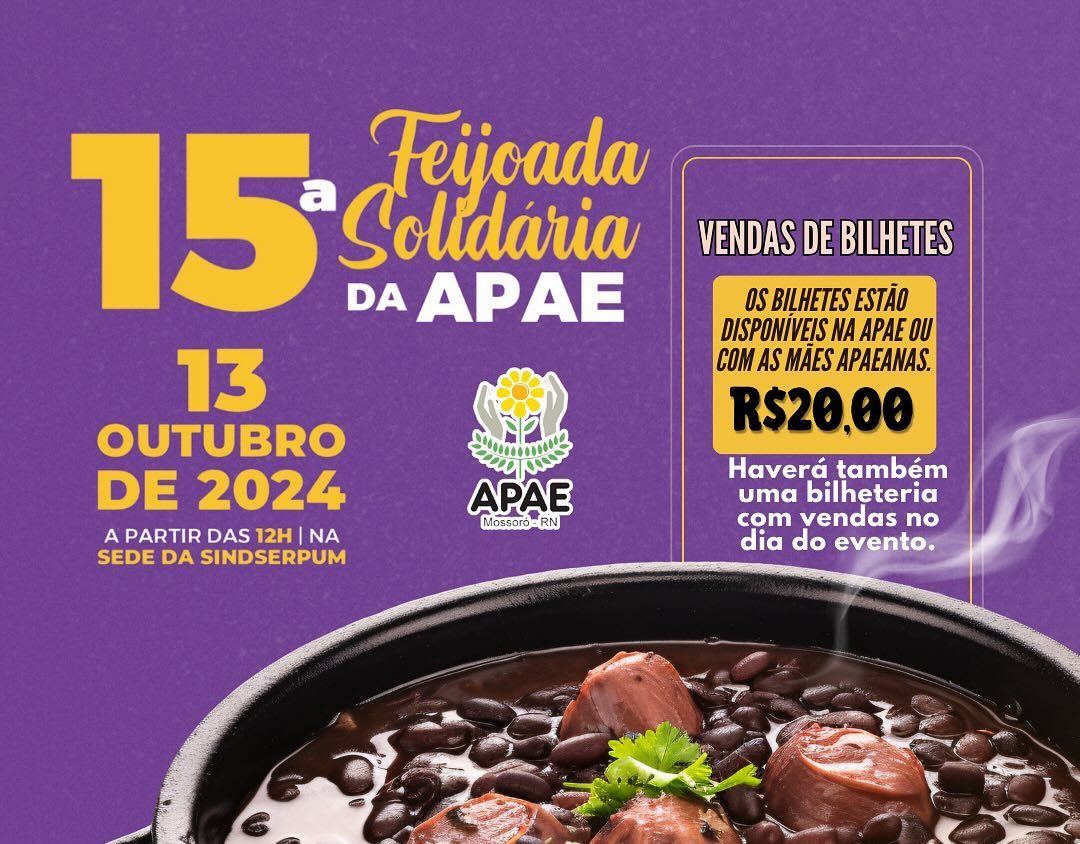 As senhas para a feijoada já estão a venda ao preço de R$ 20,00 e podem ser adquiridas na própria instituição ou no dia do evento. Para mais informações, basta acessar o Instagram da Apae Mossoró.