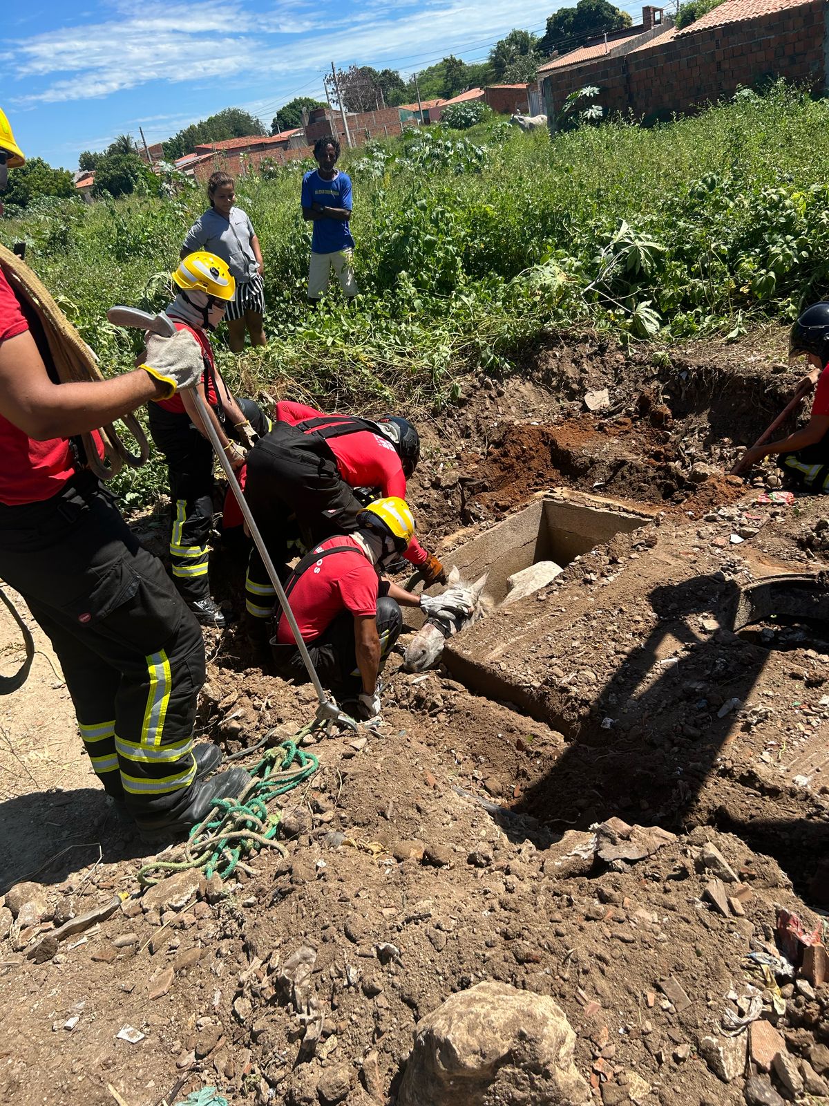 Na manhã desta sexta-feira (18), o Corpo de Bombeiros foi acionado para retirar um cavalo que acabou caindo em um sistema de drenagem pluvial localizado na Rua Vicente Ferreira Duarte, no Bairro Belo Horizonte, em Mossoró.
