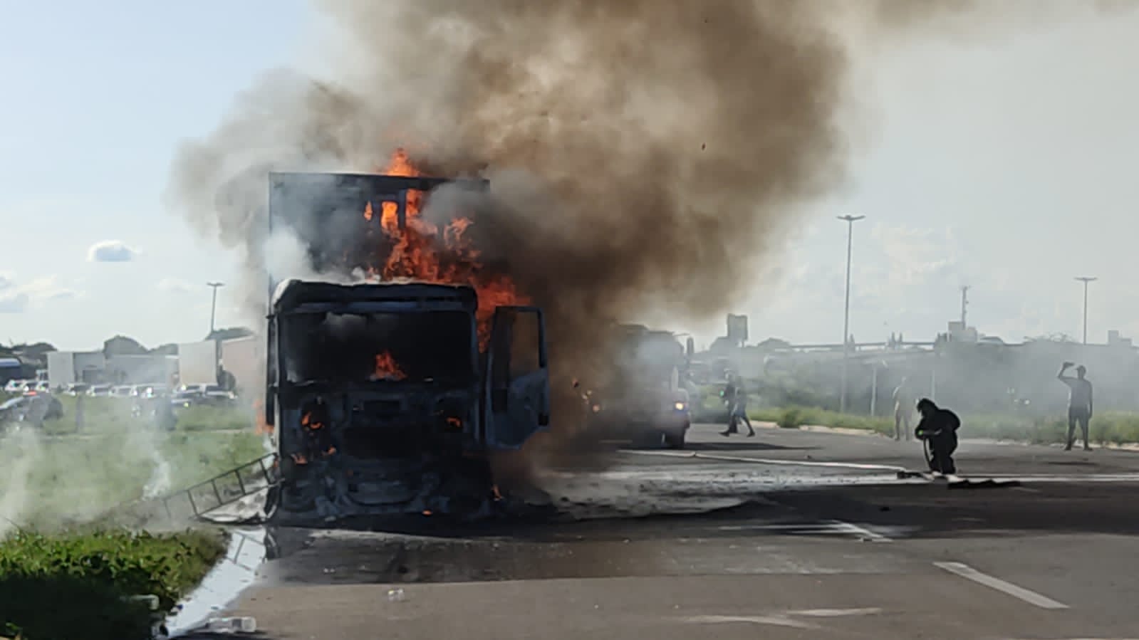 Por volta das 15h30 desta terça-feira (19) um caminhão baú entrou em chamas na BR 304, Mossoró/RN, na saída para Natal. De acordo com moradores do Sumaré, o caminhão estava carregado de fraldas descartáveis.