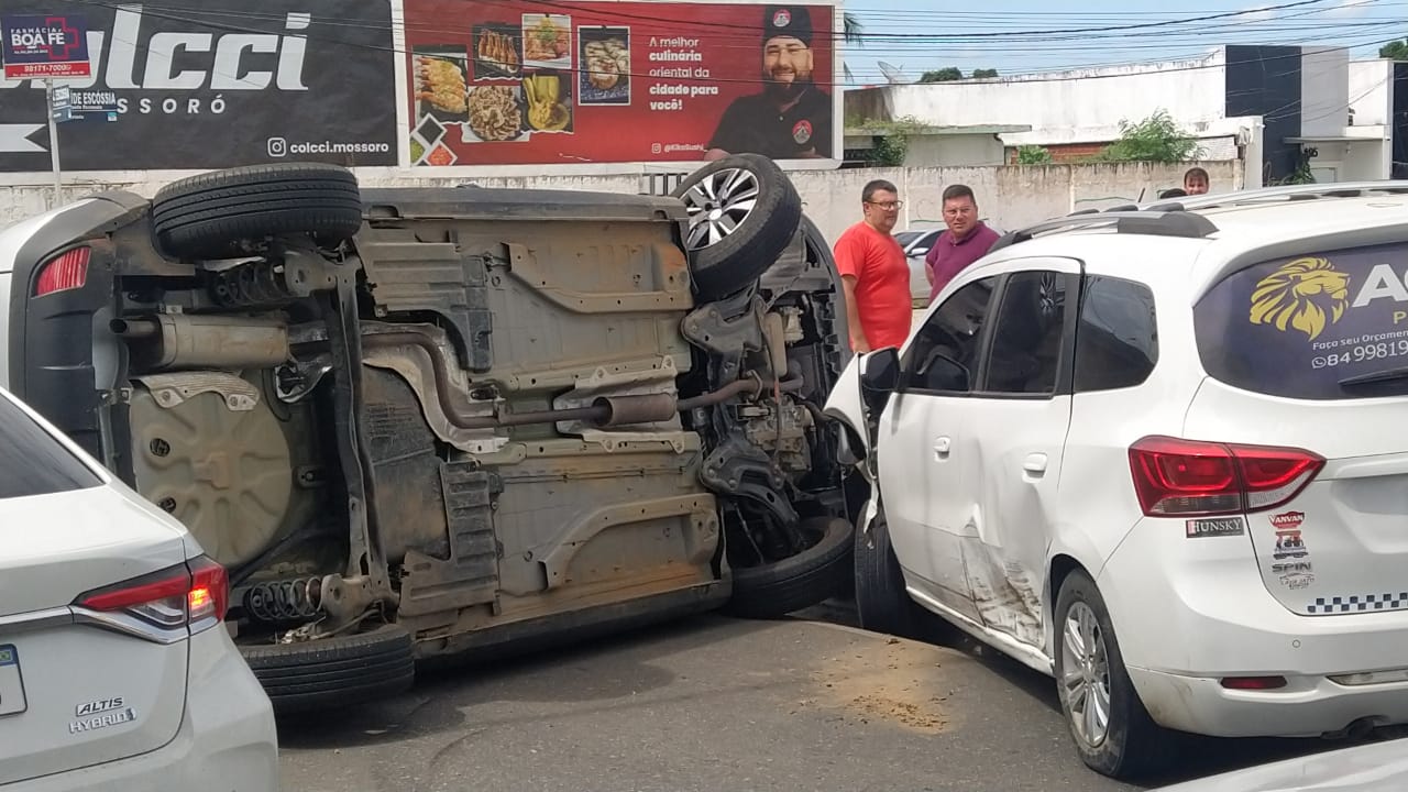 Um congestionamento foi registrado na Avenida João da Escóssia, após um capotamento envolvendo três carros na manhã dessa sexta-feira (19), em Mossoró. Não há registro de vítimas.