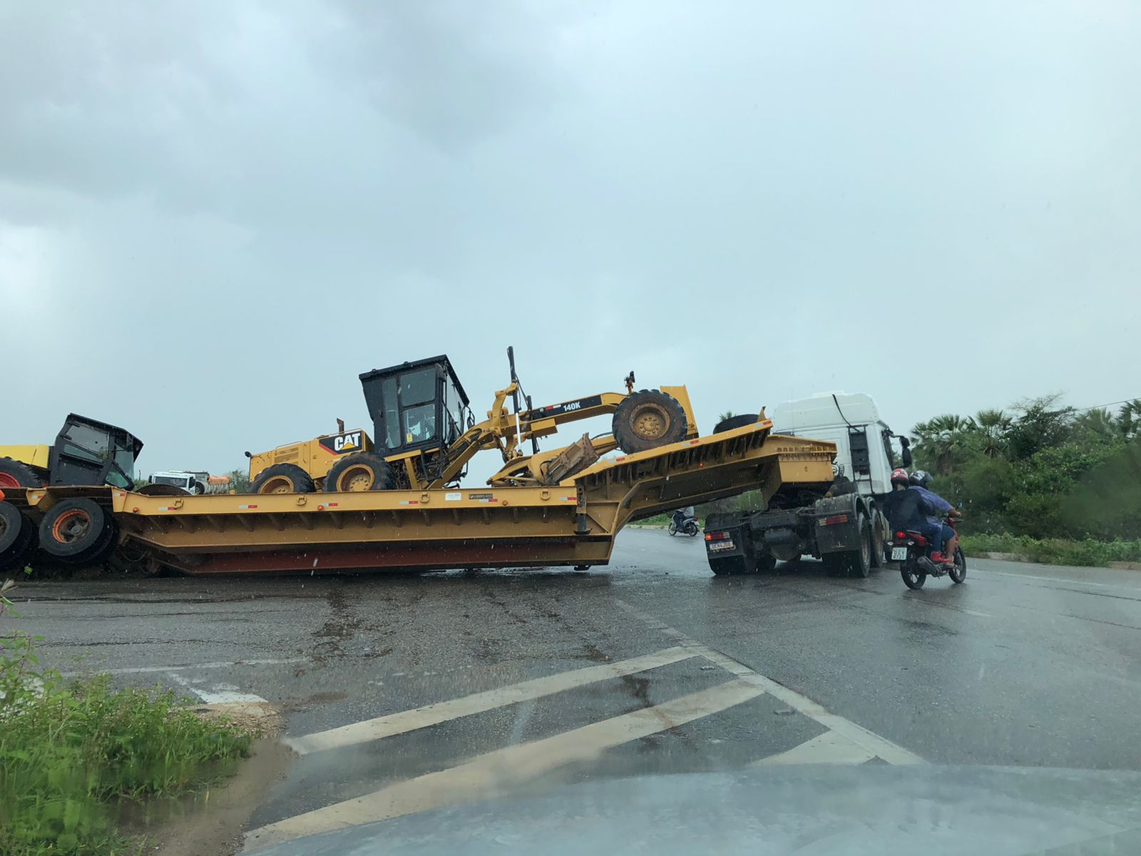 Uma carreta que trafegava pela BR 304 no sentido Mossoró-Fortaleza tombou próximo ao km 43. O veículo transportava dois tratores e saiu da pista após tentar fazer um retorno um pouco antes da ponte sobre sobre a Barragem de Genésio. A carretava acabou atravessada na pista bloqueando o tráfego. Quem fazia o sentido Fortaleza precisou voltar e usar um caminho alternativo pelo meio da cidade. A Polícia Rodoviária Federal (PRF) foi acionada.