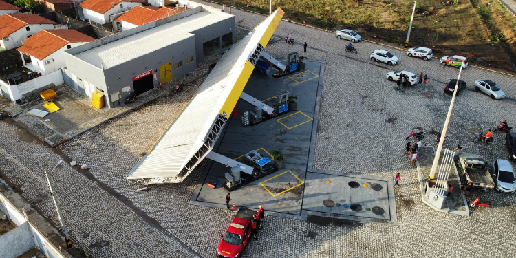 Chuva com rajadas de vento derruba teto de posto de gasolina; veja vídeo