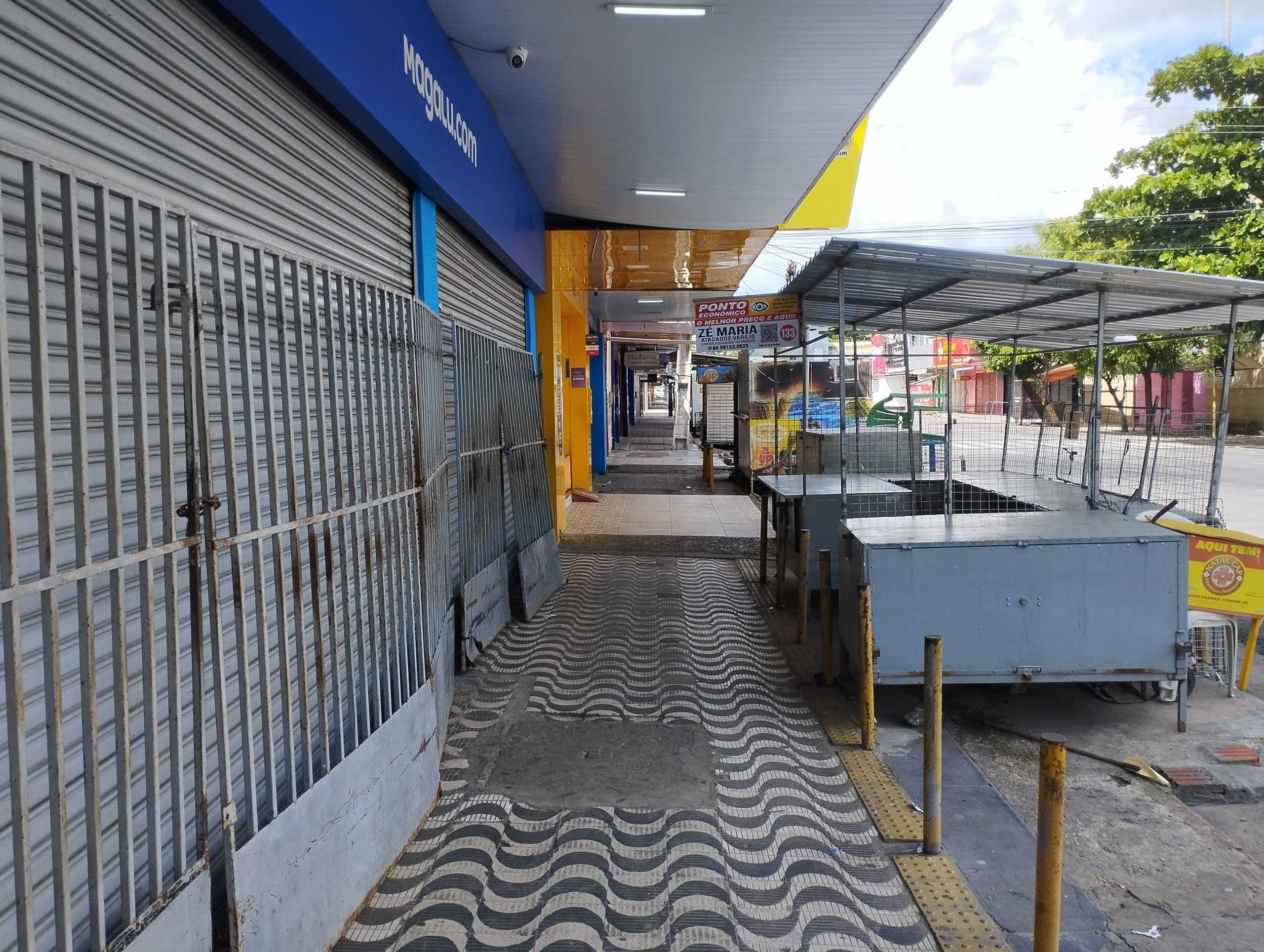 Por volta das 13h, a equipe de Jornalismo da TCM percorreu alguns locais e constatou que os estabelecimentos comerciais estavam com as portas fechadas. A exceção foram as farmácias.
