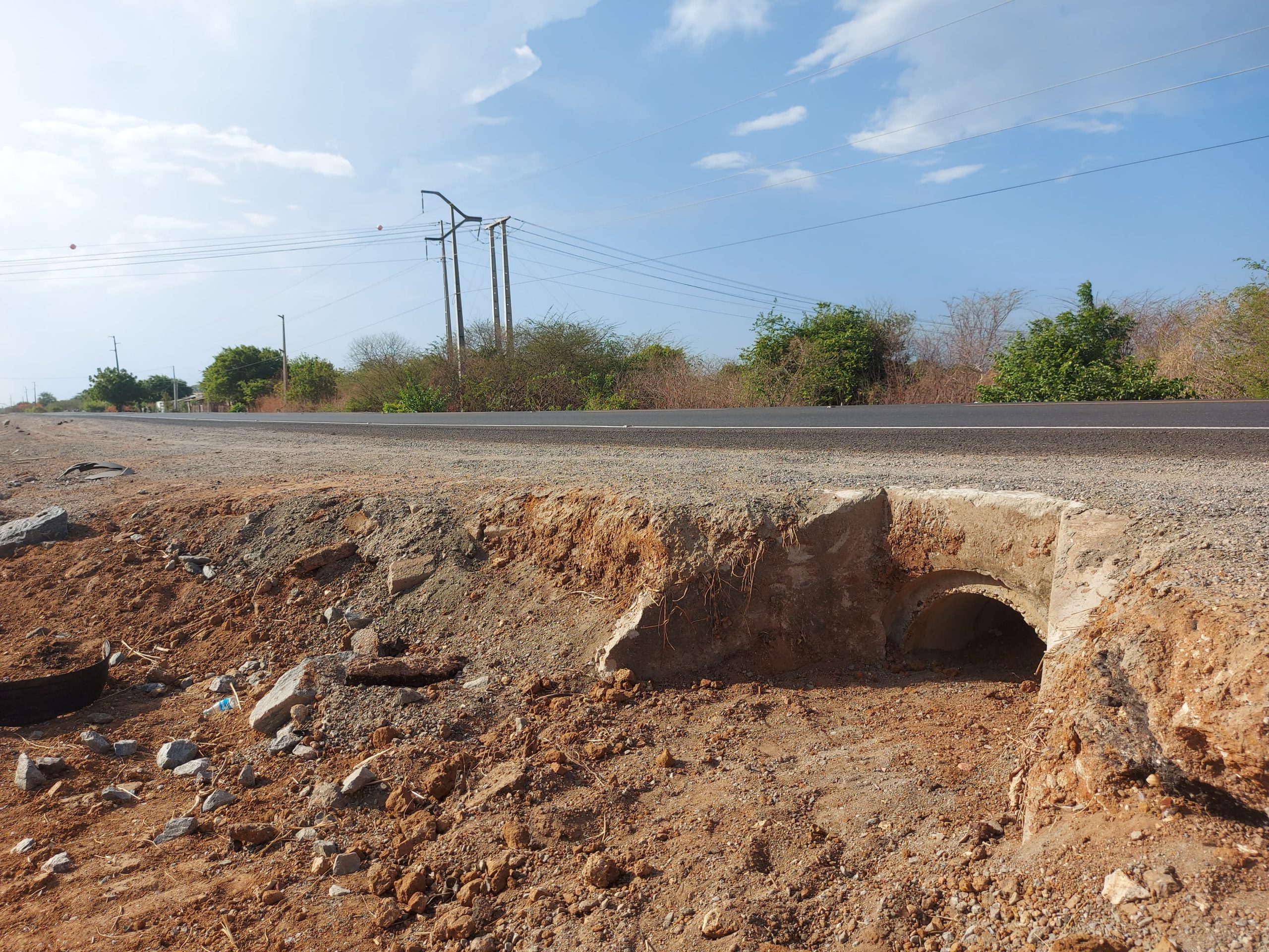 De acordo com a agricultora Francisca de Cássia, devido à obra recente de restauração da rodovia estadual, a passagem de água próxima de sua residência ficou comprometida, e a situação do local, que já convive com inundações no período chuvoso, tende a piorar nos próximos meses. Segundo ela, há outras duas manilhas responsáveis pela drenagem na região