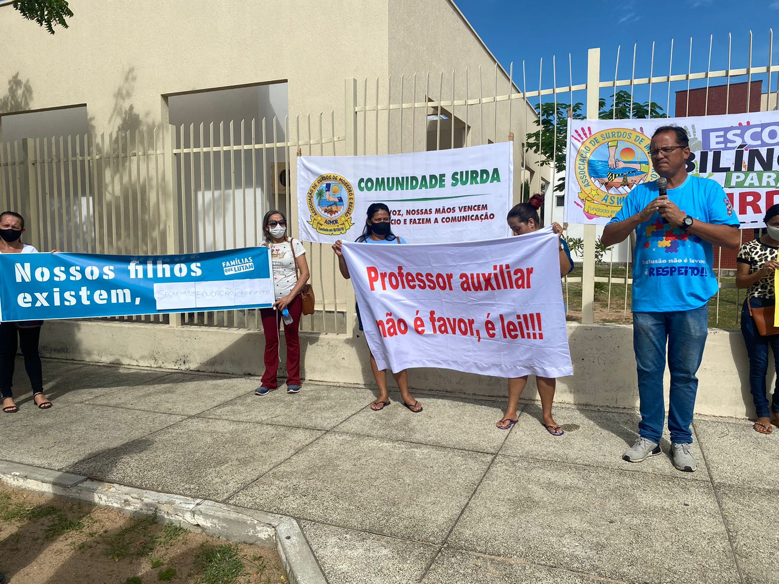 Pais e mães de crianças com autismo realizaram nesta quarta-feira (04), um protesto em frente ao Centro Administrativo da Prefeitura de Mossoró, reivindicando os auxiliares de sala de aula nas escolas do município. Desde o início do ano letivo em março deste ano, os pais reclamam da ausência dos profissionais que dão suporte para crianças com autismo e outras deficiências.