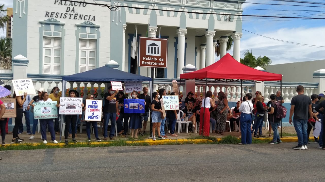 Na manhã desta sexta-feira (14) professores da rede municipal voltaram a protestar, em frente a Palácio da Resistência em Mossoró, após documento enviado pelo Gabinete do Prefeito Allyson Bezerra (SD) ao Sindicato dos Servidores Públicos municipais, detalhando sobre os pontos reivindicados pela categoria da educação e pedindo o fim da greve.
