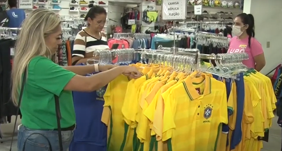“Já estou com a camisa. Já está bem próximo da Copa e eu espero que se Deus quiser o Brasil dessa vez vai ganhar”, afirma a cliente Maria das Graças.