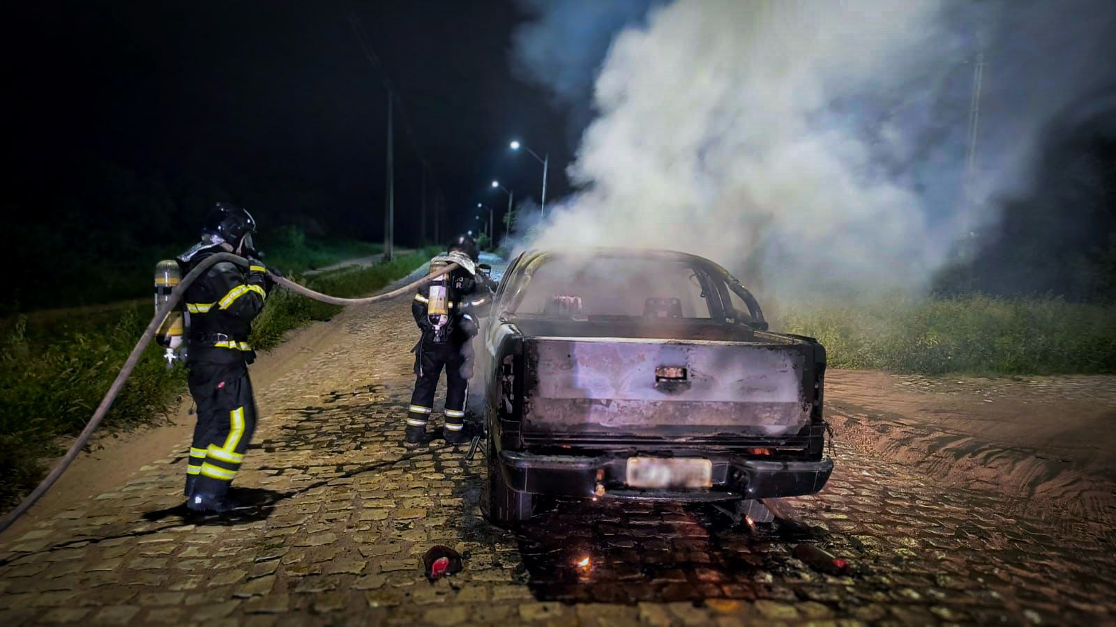 De acordo com o Corpo de Bombeiros, o veículo, modelo S10, estava estacionado em via pública e, no momento da ocorrência, não havia nenhum responsável presente. Ninguém ficou ferido.