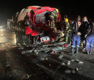 Segundo a Polícia Rodoviária Federal (PRF), a ocorrência envolveu dois caminhões, que colidiram frontalmente na rodovia federal. Com o impacto, um dos motoristas ficou preso às ferragens.