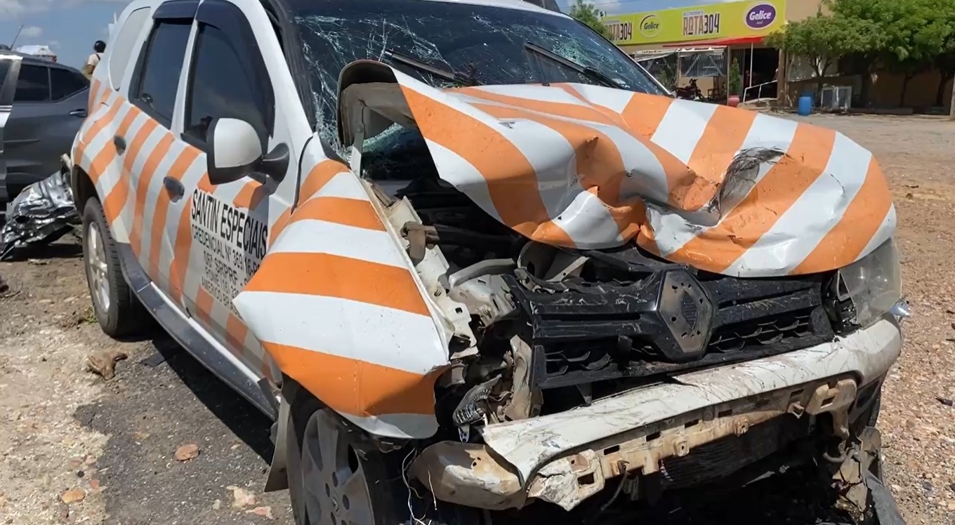 Os veículos que se envolveram no acidente foram um Nissan Kicks e um Renault Duster, o carro batedor. Os air-bags dianteiros foram acionados. Dentro do Kicks estavam um casal e uma criança, no Duster, apenas o motorista.
