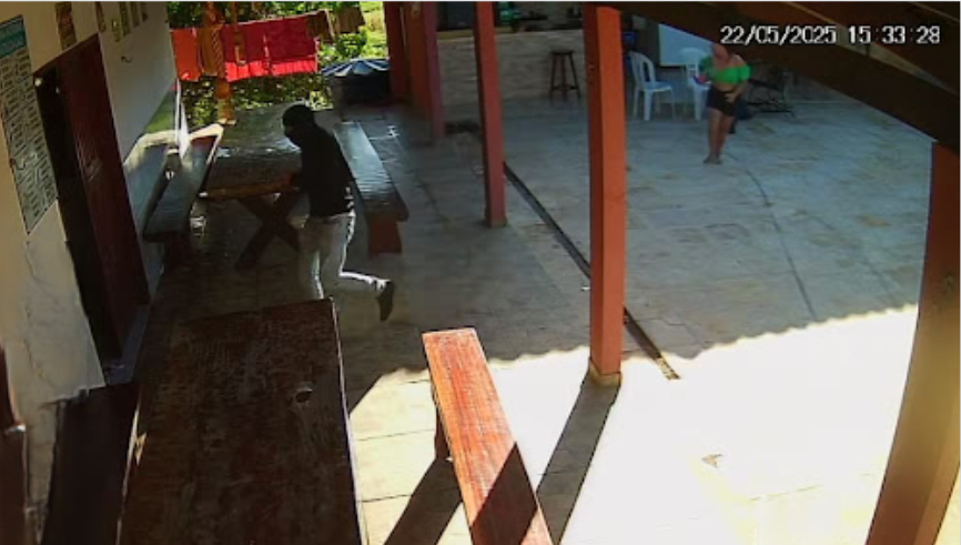Imagens de câmeras de segurança mostram o momento em que os criminosos chegaram ao local, mandaram que uma mulher, que estava no ambiente, saísse e passaram a atirar contra Júlio Ricardo.