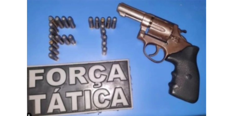 A equipe policial estava em patrulhamento na cidade quando foi acionada para atender uma ocorrência. Quando chegaram ao local, os policiais constataram que havia um homem portando arma de fogo de forma irregular e estava ameaçando a esposa e o filho.