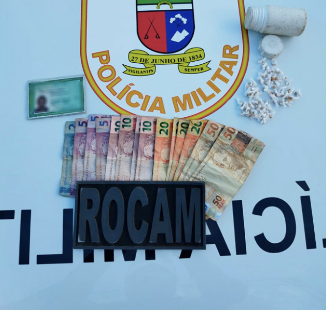 Com Marcelo Bezerra de Queiroz, 32 anos foi encontrado um pote branco com 59 pedras de crack e em uma das mãos mais de R$ 250 fracionado.
