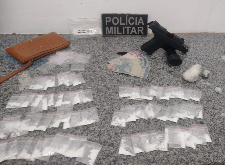 Com ele, os policiais apreenderam 67 “petecas” de cocaína, uma pistola 9mm (com registro de furto) e 17 munições intactas.