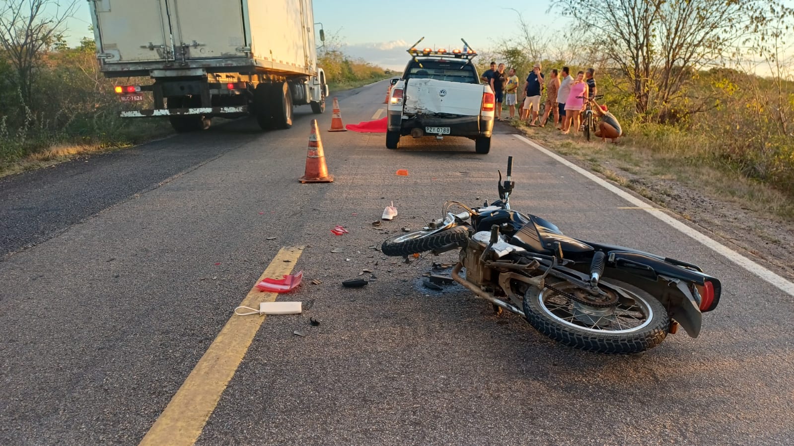 A colisão envolveu uma motocicleta e um VW/Saveiro, resultando na morte da condutora da motocicleta. A identidade da vítima ainda não foi divulgada.