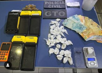 Durante as diligências para cumprimento dos mandados, o investigado Adailton da Silva Lima foi flagrado guardando em sua residência 54 papelotes de cocaína, além de dinheiro fracionado, balança de precisão, cadernetas com anotações, máquinas de pagamento eletrônico e outros objetos de interesse investigativo.