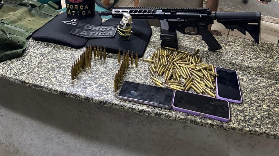 Durante a operação, policiais da Força Tática do 2º Batalhão da PM apreenderam um fuzil calibre 5.56, diversas munições do mesmo calibre, um colete à prova de balas e até uma granada.