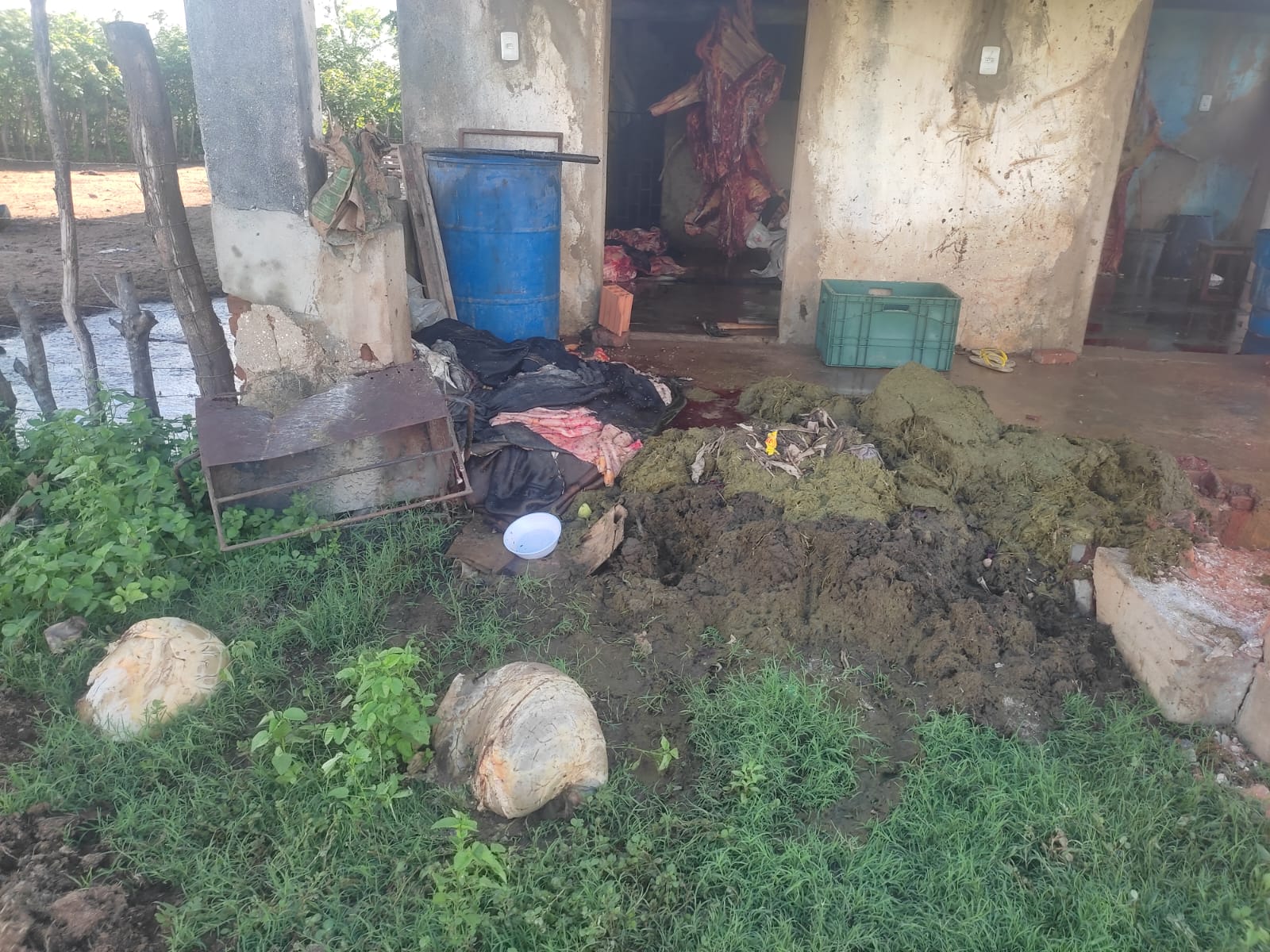De acordo com a PM, os militares se deslocaram até o local para averiguar uma denúncia e, quando chegaram, constataram que o abatedouro funcionava sem as condições mínimas de higiene e não tinha licença para atuar.