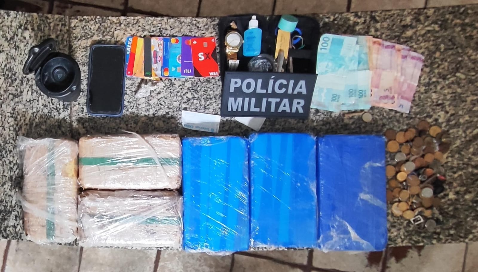 Além das drogas, foram apreendidos vários cartões bancários e R$ 810,00. No entanto, a arma utilizada pelo suspeito não foi localizada.