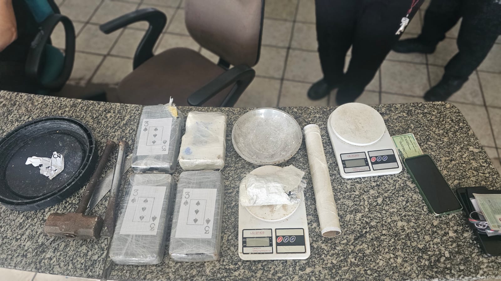 Além das substâncias ilícitas, diversos apetrechos utilizados no tráfico foram encontrados e apreendidos. Jackson Leonardo Nascimento Pereira e Everton Pereira Costa Júnior, ambos de 25 anos, foram presos em flagrante e levados à delegacia da Polícia Civil, onde serão tomadas as providências legais cabíveis.