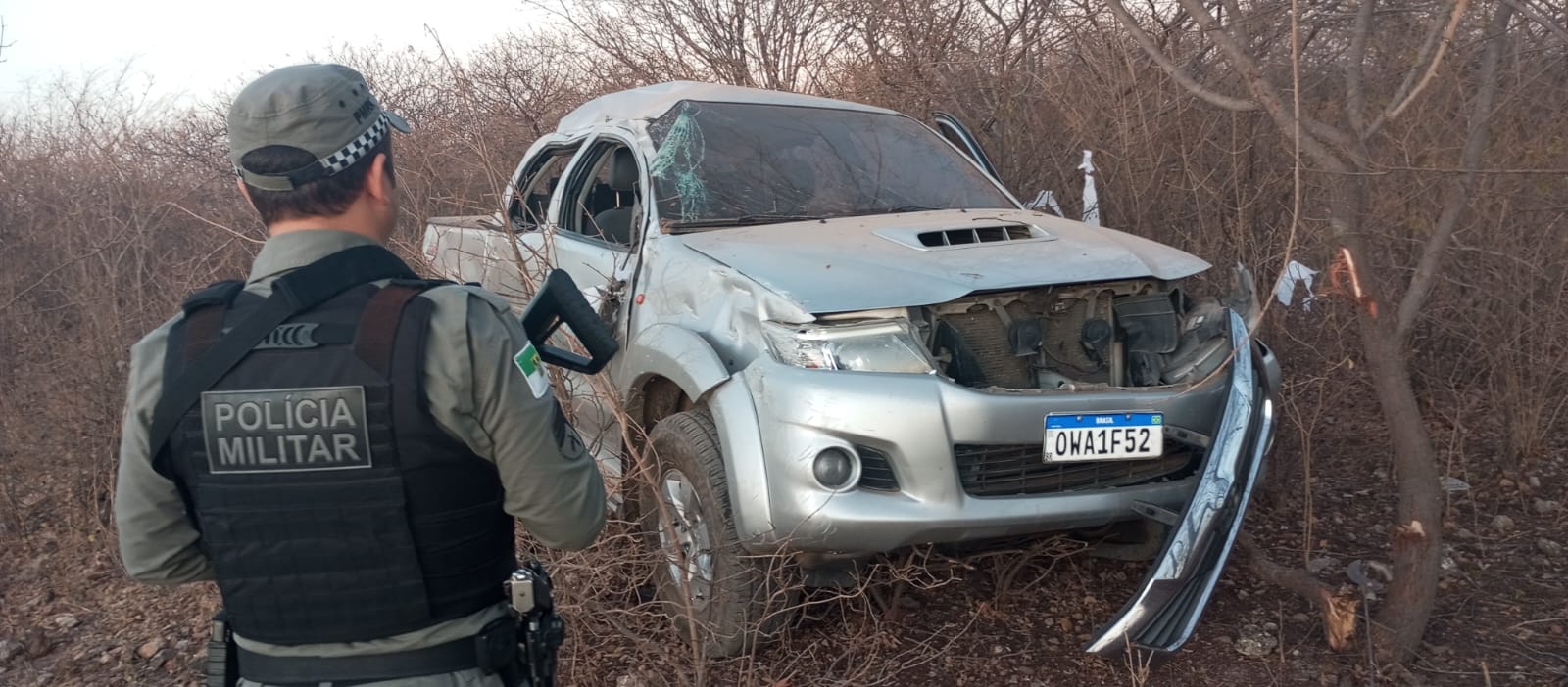 A Polícia Militar foi acionada e conseguiu localizar o veículo capotado em uma estrada da região. O proprietário também foi localizado. A equipe policial também recuperou pertences tomados durante o arrastão.