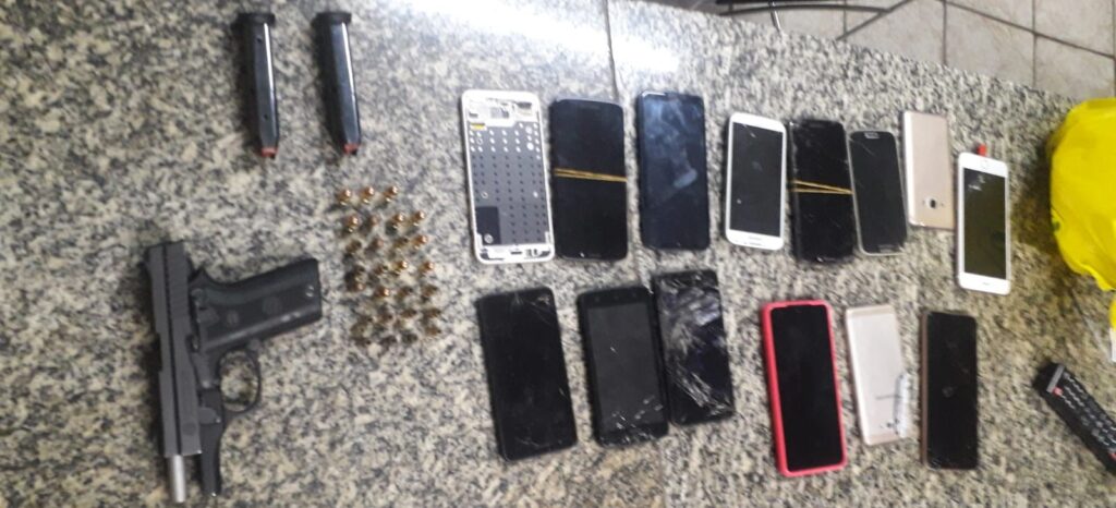 De acordo com a Polícia, a prisão aconteceu durante um patrulhamento de rotina, onde foi identificado que o casal estava dirigindo alcoolizado. No interior do carro a Polícia encontrou a arma, munição e vários aparelhos de celular.