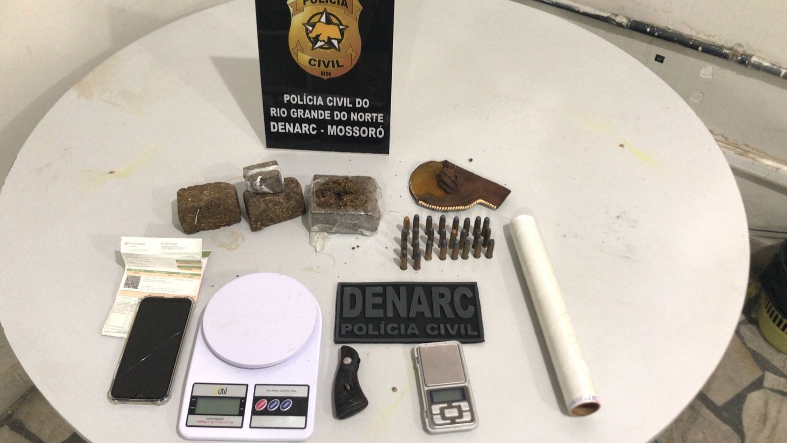 A equipe de Denarc foi até o local e durante as diligências, os policiais encontraram 600 gramas de maconha, além de munições de arma de fogo. O dono da residência, Pedro Henrique Leitão Vasconcelos, foi preso, conduzido à delegacia e autuado em flagrante, por tráfico de droga e posse ilegal de munições.